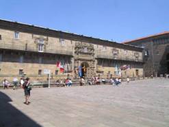 Avant d’arriver ici, j’ai eu beaucoup de difficultés. Sur cette portion du chemin, il y a d’énormes travaux : la construction d’une autoroute qui ira de Burgos jusqu’en Galice. D’habitude, je suis furieux de me tromper de chemin, mais aujourd’hui, ma distraction me fut bien utile. Je suis passé par une route difficile qui m’a rallongé de plusieurs kilomètres, en me faisant passer sous les deux voies d’autoroute déjà construites au lieu de passer dessus. Je suis très sensible au vertige et j’aurai eu beaucoup de mal à passer à vélo sur cette portion de route qui faisait bien trois ou quatre kilomètres de long au-dessus d’un vide de bien 150 mètres. Rien que d’y penser, j’en ai des frissons dans le dos. A partir d’O Cebreiro, j’ai la route quasiment en totalité jusqu’à Saint Jacques. Le nombre de piétons est de plus en plus important et il est difficile de zigzaguer parmi eux. J’ai donc décidé de prendre la route goudronnée. |